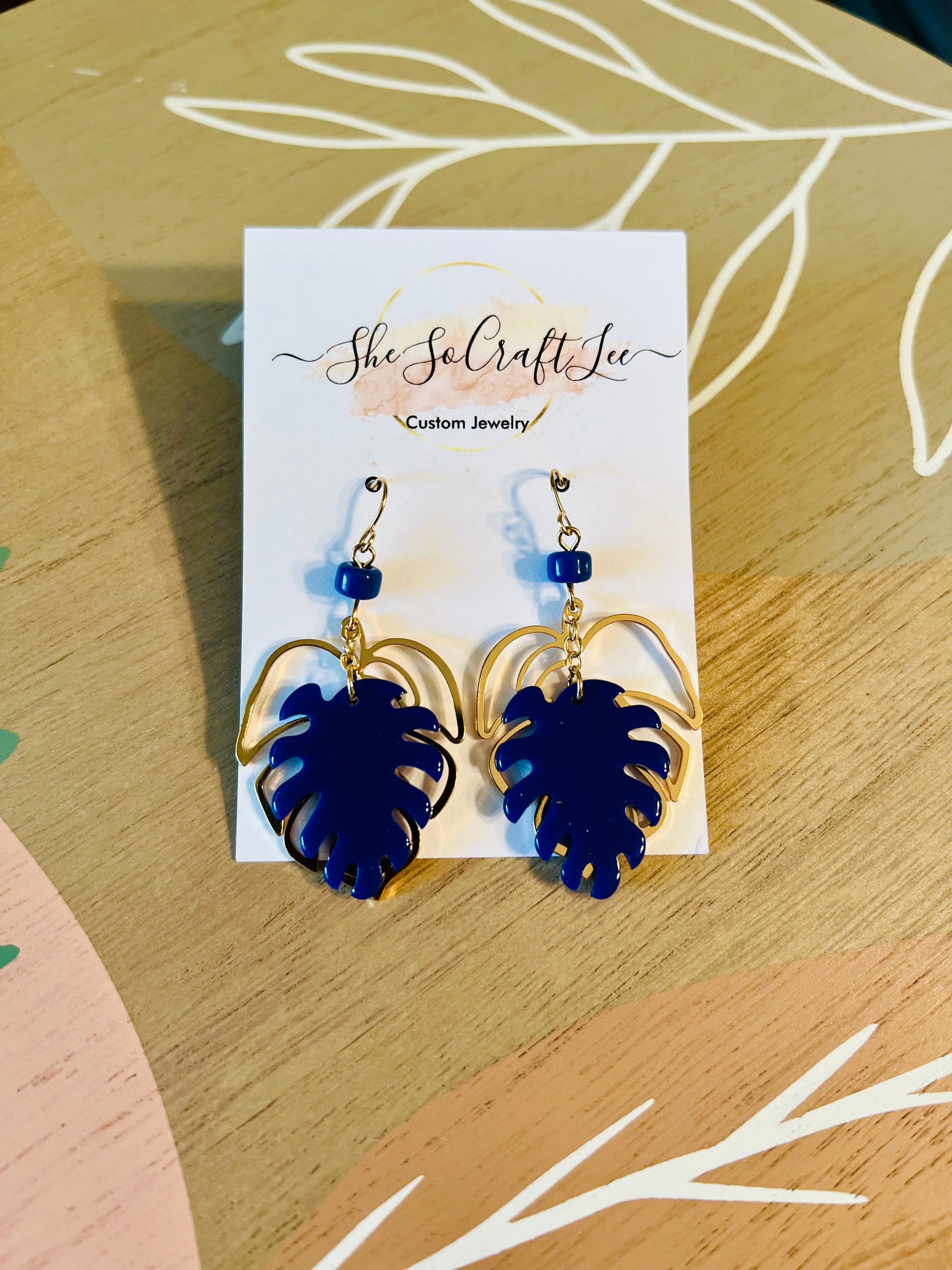 Gold and navy monsters dangle earrings, elegant and cute way to accessorize your day!