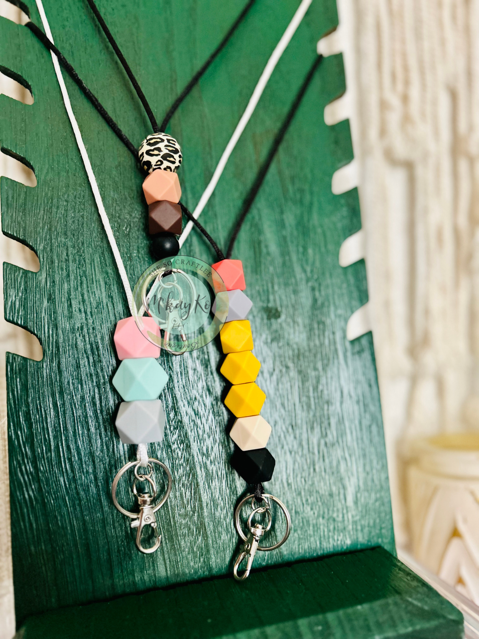 These lanyards are made with silicone beads and acrylic rainbows. They are a great way to personalize and accessorize your daily work badge or keys!